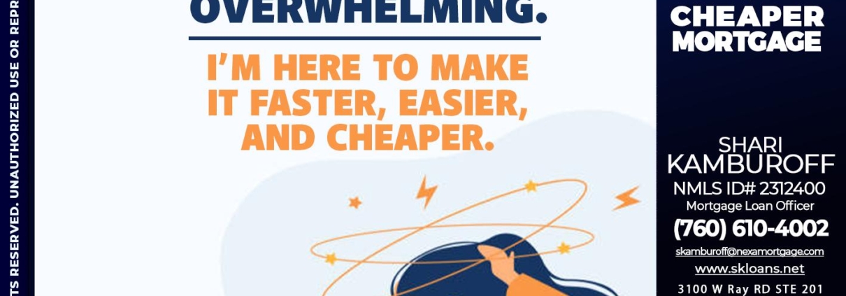 Hi, my name is Shari Kamburoff. I’m a Loan Officer with NEXA Mortgage LLC., offering personalized mortgage solutions, fast customized quotes, great rates and service with integrity.