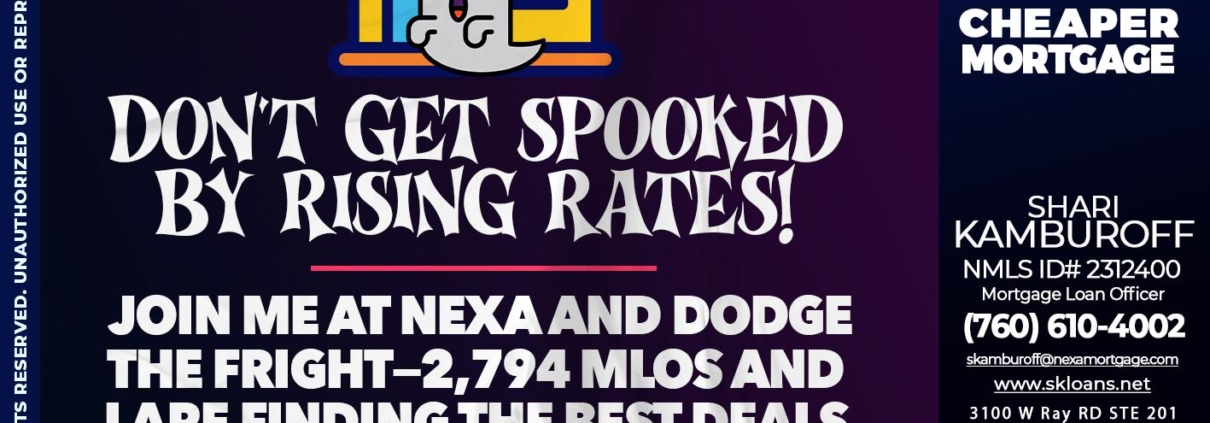dont get spooked - Shari Kamburoff -Mortgage Loan OfficerHi, my name is Shari Kamburoff. I’m a Loan Officer with NEXA Mortgage LLC., offering personalized mortgage solutions, fast customized quotes, great rates and service with integrity.