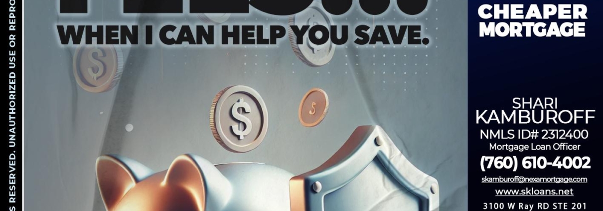 DON´T PAY UNNECESARY FEES... - Shari Kamburoff -Mortgage Loan OfficerHi, my name is Shari Kamburoff. I’m a Loan Officer with NEXA Mortgage LLC., offering personalized mortgage solutions, fast customized quotes, great rates and service with integrity.