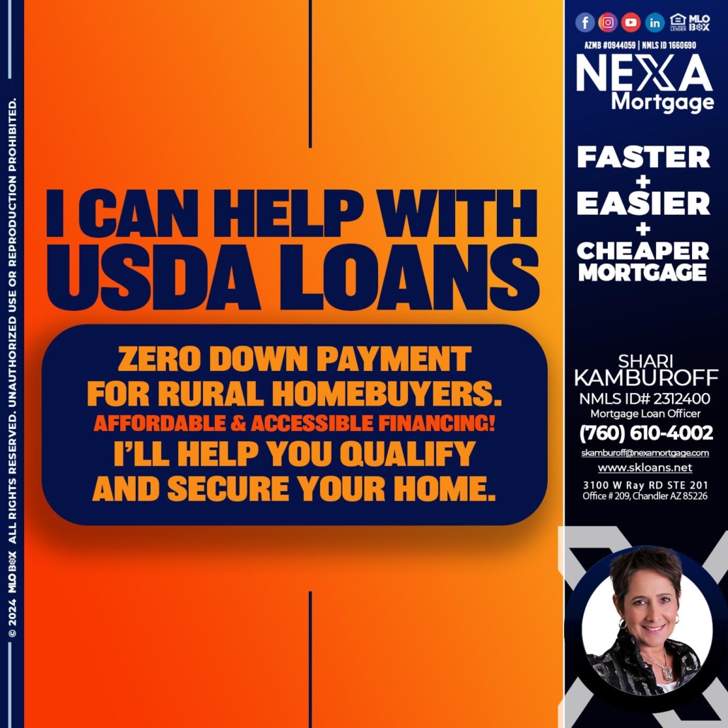 Hi, my name is Shari Kamburoff. I’m a Loan Officer with NEXA Mortgage LLC., offering personalized mortgage solutions, fast customized quotes, great rates and service with integrity.