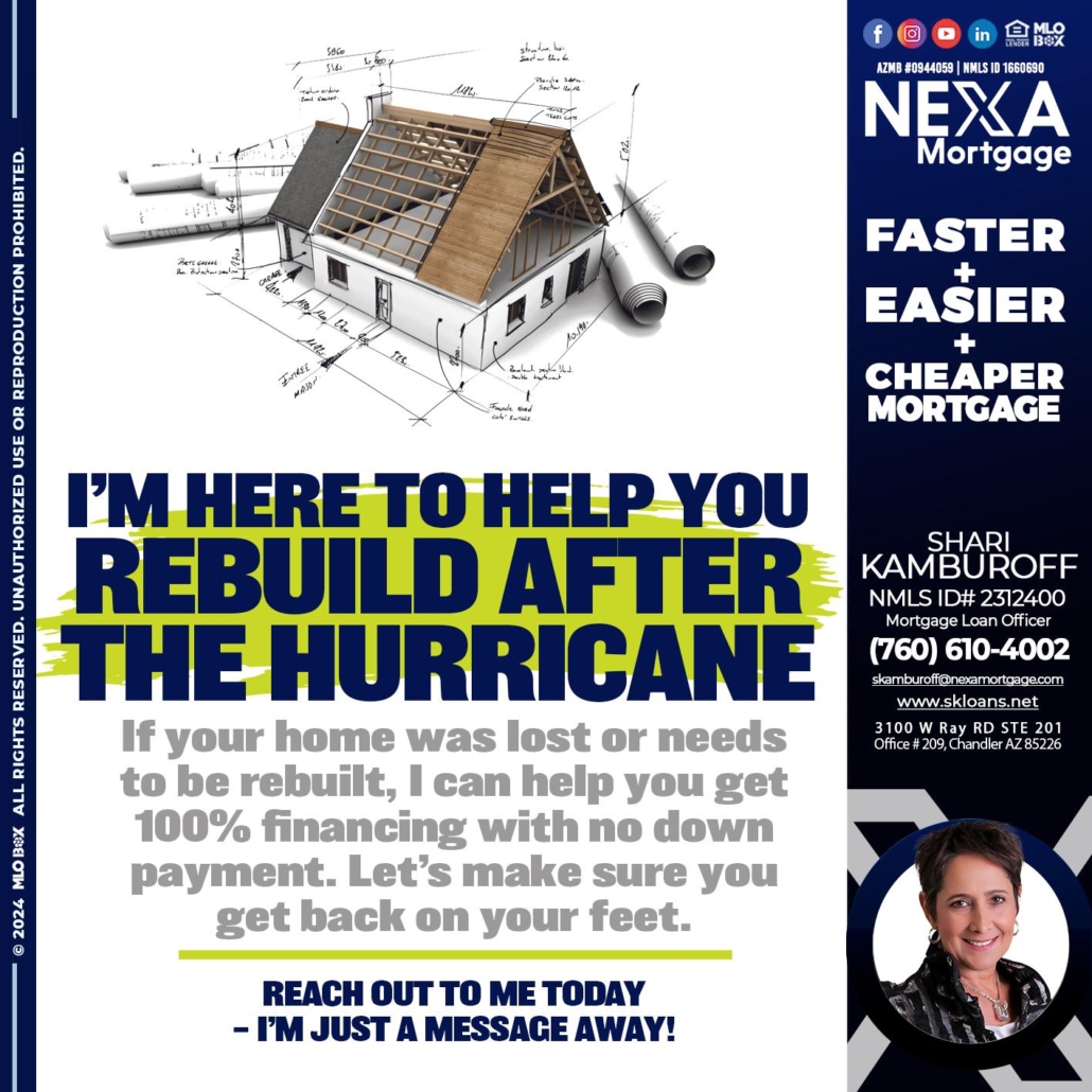 Hi, my name is Shari Kamburoff. I’m a Loan Officer with NEXA Mortgage LLC., offering personalized mortgage solutions, fast customized quotes, great rates and service with integrity.