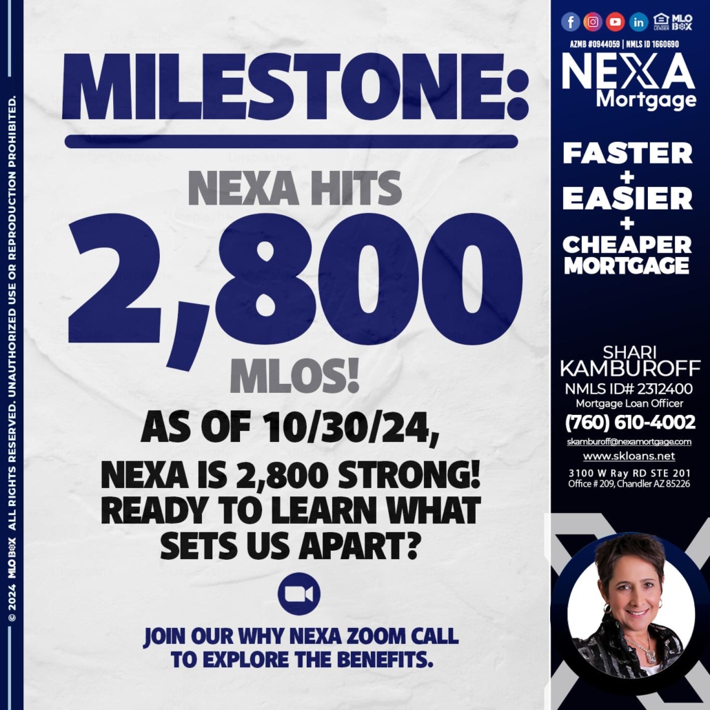 Hi, my name is Shari Kamburoff. I’m a Loan Officer with NEXA Mortgage LLC., offering personalized mortgage solutions, fast customized quotes, great rates and service with integrity.