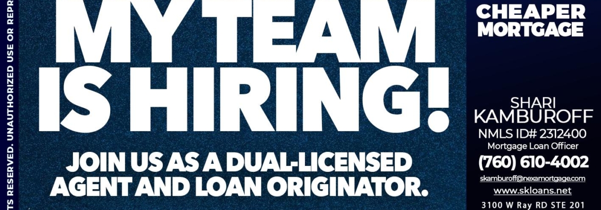 my team is hiring - Shari Kamburoff -Mortgage Loan OfficerHi, my name is Shari Kamburoff. I’m a Loan Officer with NEXA Mortgage LLC., offering personalized mortgage solutions, fast customized quotes, great rates and service with integrity.