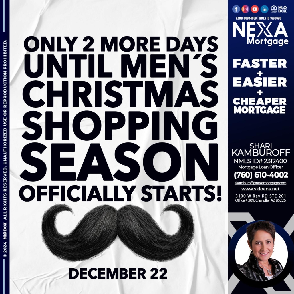 UNTIL 2 MORE DAYS... - Shari Kamburoff -Mortgage Loan OfficerHi, my name is Shari Kamburoff. I’m a Loan Officer with NEXA Mortgage LLC., offering personalized mortgage solutions, fast customized quotes, great rates and service with integrity.