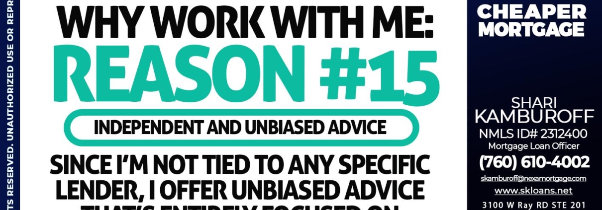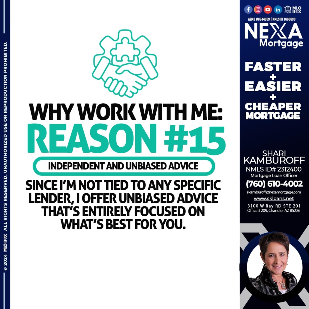 Hi, my name is Shari Kamburoff. I’m a Loan Officer with NEXA Mortgage LLC., offering personalized mortgage solutions, fast customized quotes, great rates and service with integrity.