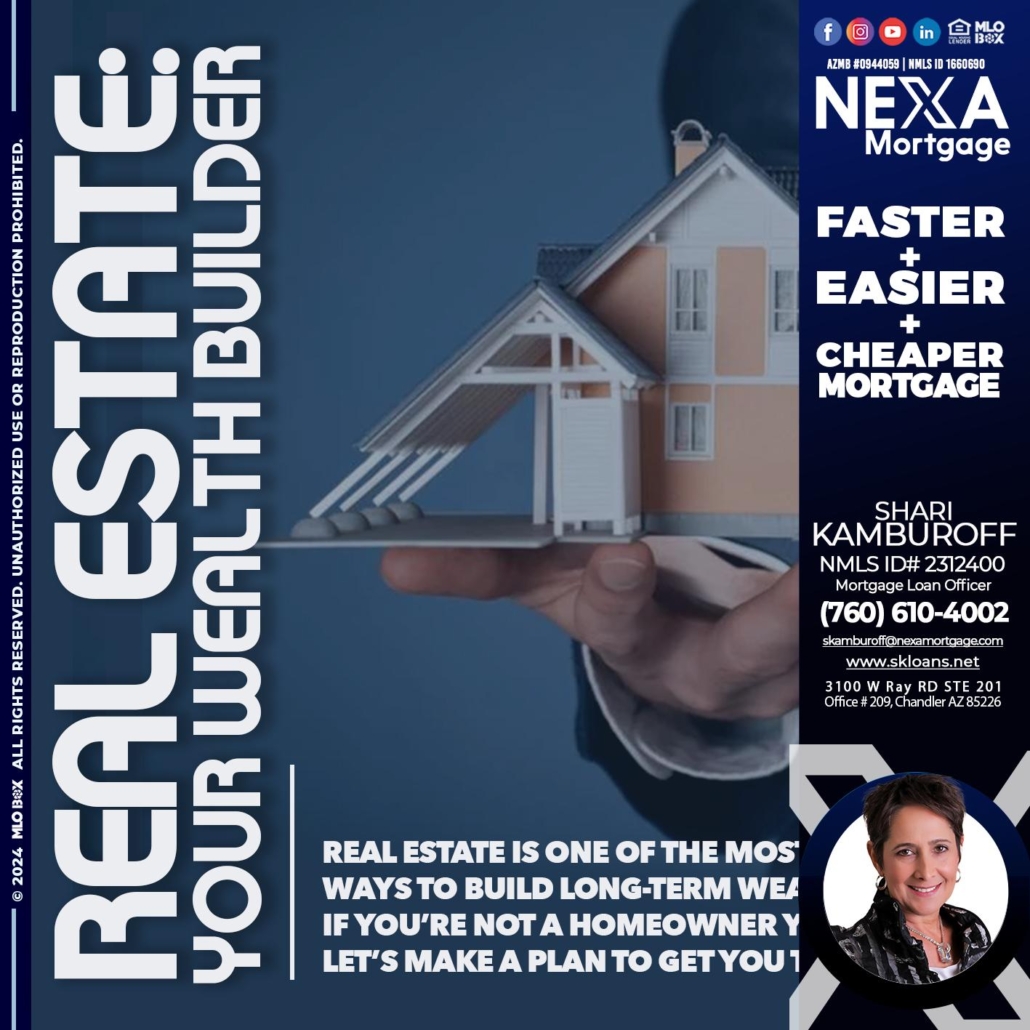 Hi, my name is Shari Kamburoff. I’m a Loan Officer with NEXA Mortgage LLC., offering personalized mortgage solutions, fast customized quotes, great rates and service with integrity.