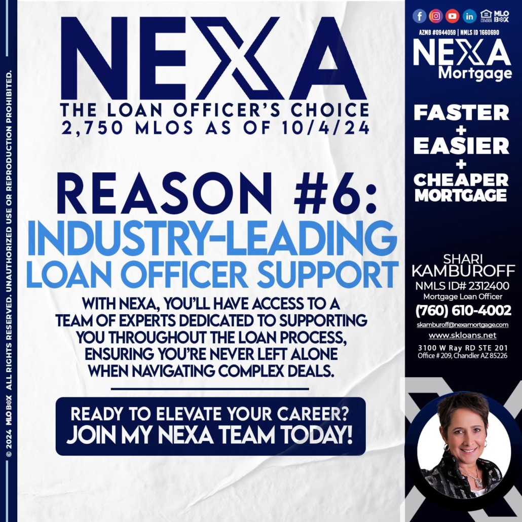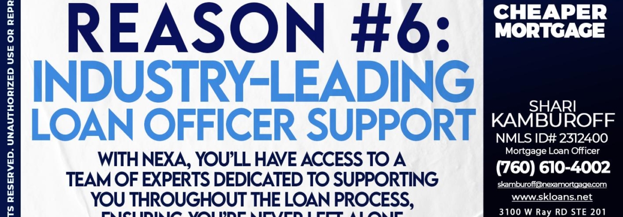 Hi, my name is Shari Kamburoff. I’m a Loan Officer with NEXA Mortgage LLC., offering personalized mortgage solutions, fast customized quotes, great rates and service with integrity.