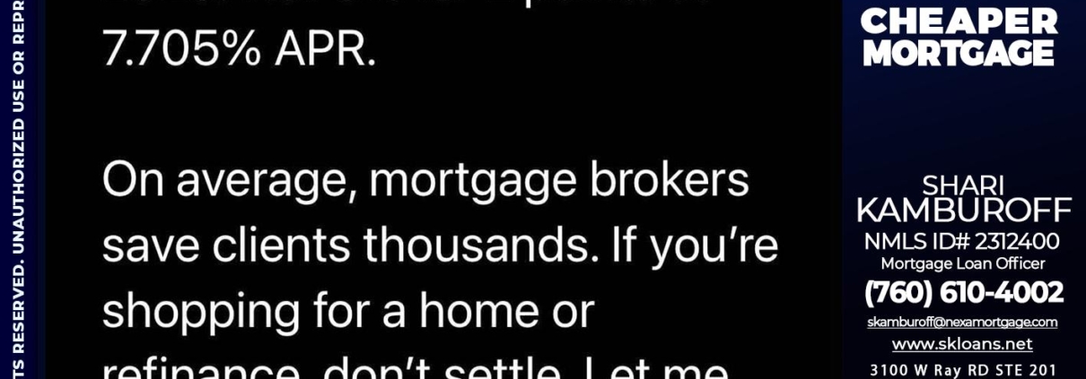 Hi, my name is Shari Kamburoff. I’m a Loan Officer with NEXA Mortgage LLC., offering personalized mortgage solutions, fast customized quotes, great rates and service with integrity.