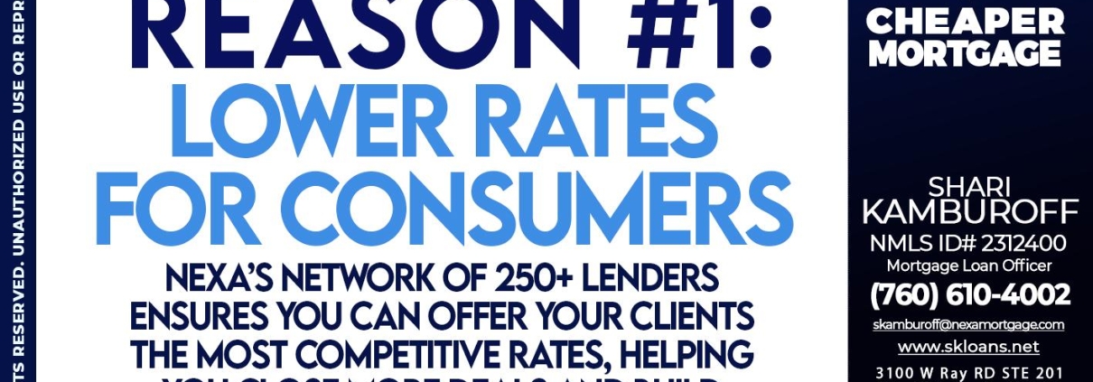 Hi, my name is Shari Kamburoff. I’m a Loan Officer with NEXA Mortgage LLC., offering personalized mortgage solutions, fast customized quotes, great rates and service with integrity.