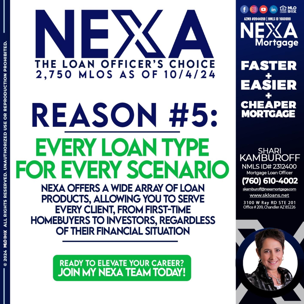 Hi, my name is Shari Kamburoff. I’m a Loan Officer with NEXA Mortgage LLC., offering personalized mortgage solutions, fast customized quotes, great rates and service with integrity.
