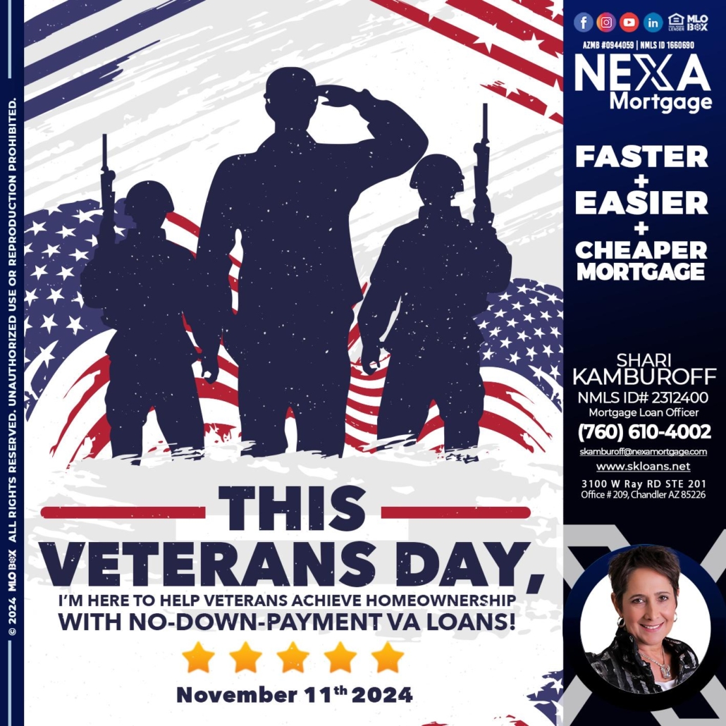 Hi, my name is Shari Kamburoff. I’m a Loan Officer with NEXA Mortgage LLC., offering personalized mortgage solutions, fast customized quotes, great rates and service with integrity.