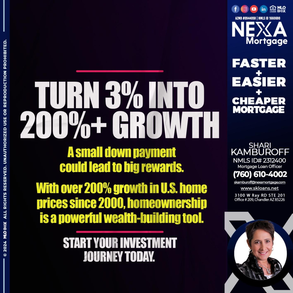 Hi, my name is Shari Kamburoff. I’m a Loan Officer with NEXA Mortgage LLC., offering personalized mortgage solutions, fast customized quotes, great rates and service with integrity.
