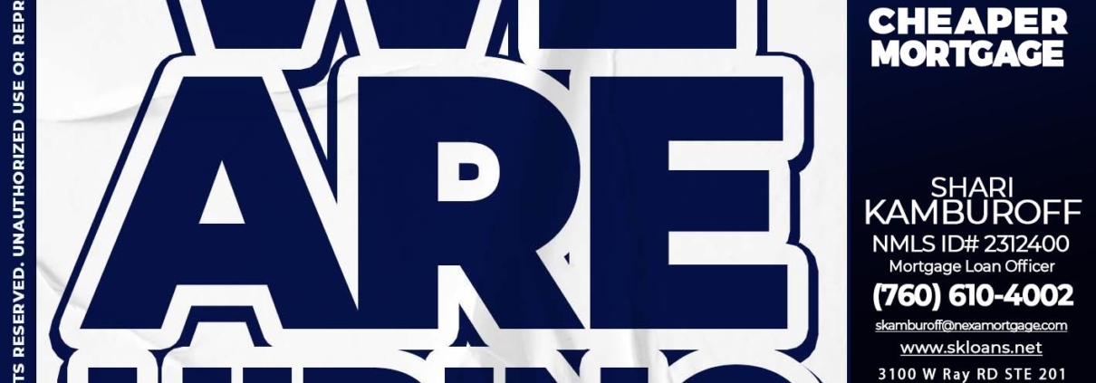 we are hiring - Shari Kamburoff -Mortgage Loan OfficerHi, my name is Shari Kamburoff. I’m a Loan Officer with NEXA Mortgage LLC., offering personalized mortgage solutions, fast customized quotes, great rates and service with integrity.