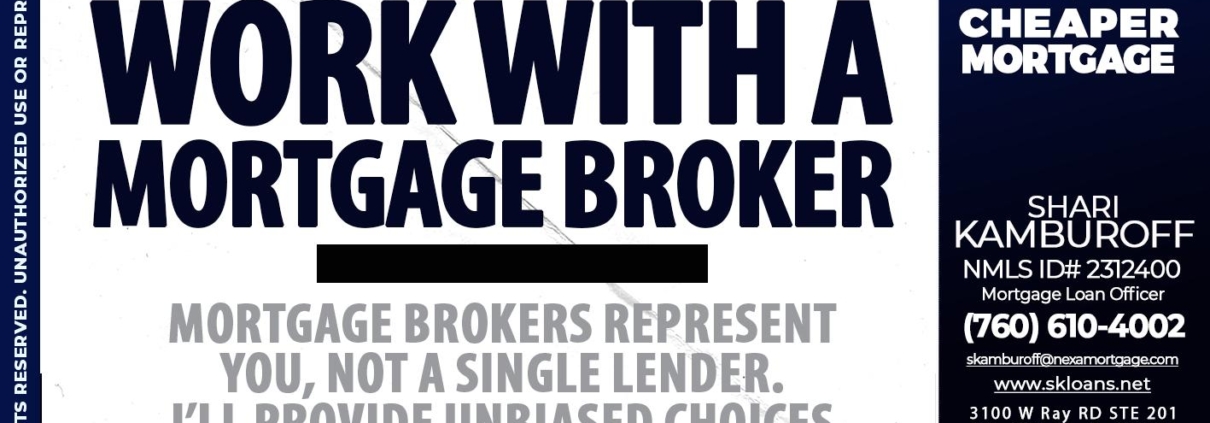 WORK WITH A BROKER - Shari Kamburoff -Mortgage Loan OfficerHi, my name is Shari Kamburoff. I’m a Loan Officer with NEXA Mortgage LLC., offering personalized mortgage solutions, fast customized quotes, great rates and service with integrity.